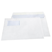 Конверт BusinessPost C4 100 г/кв.м белый стрип с внутренней запечаткой с левым окном (250 штук в упаковке) 229×324 мм с окном 55×110мм расположенным в левом верхнем углу. Месторасположение окна (отступы в мм): слева — 25 мм, справа — 189 мм, сверху — 30 мм, снизу — 144 мм. Выполнен из офсета 100 г/кв.м, имеет клеевое нанесение типа стрип (отрывная силиконовая лента). Изделие обладает запечаткой (заливкой) с внутренней стороны, обеспечивающей конфиденциальность содержимого: препятствует прочтению вложенных документов или попытке просветить содержимое. Предназначены для пересылки 50 листов А4 формата, что равно 250 г веса. Упакован 250 штук в коробке. Срок годности не ограничен. Показатель белизны бумаги — 143-149 %.