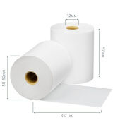 Чековая лента изготовлена из термобумаги. Бумажное полотно с наружным термослоем имеет ширину 57 мм и общую длину 40 метров. Диаметр намотки — 50-52 мм, диаметр втулки — 12 мм. Поставляются в термоусадочной пленке и гофрокоробах. Ролики для термопечати используются в кассовых аппаратах и калькуляторах со встроенным или внешним термопринтером. Цвет печати — черный.