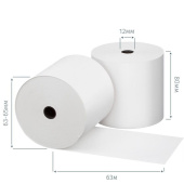Чековая лента изготовлена из термобумаги. Бумажное полотно с наружным термослоем имеет ширину 80 мм и общую длину 63 метров. Диаметр намотки — 63-65 мм, диаметр втулки — 12 мм. Поставляются в термоусадочной пленке и гофрокоробах. Ролики для термопечати используются в кассовых аппаратах и калькуляторах со встроенным или внешним термопринтером. Цвет печати — черный. Схема вложения — 1/6/252