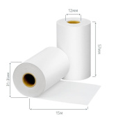 Чековая лента изготовлена из термобумаги. Бумажное полотно с наружным термослоем имеет ширину 57 мм и общую длину 15 метров. Диаметр намотки — 31-34 мм, диаметр втулки — 12 мм. Поставляются в термоусадочной пленке и гофрокоробах. Ролики для термопечати используются в кассовых аппаратах и калькуляторах со встроенным или внешним термопринтером. Цвет печати — черный.