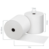 Чековая лента изготовлена из термобумаги. Бумажное полотно с наружным термослоем имеет ширину 80 мм и общую длину 70 метров. Диаметр намотки — 66-68, диаметр втулки — 12 мм. Поставляются в термоусадочной пленке и гофрокоробах. Ролики для термопечати используются в кассовых аппаратах и калькуляторах со встроенным или внешним термопринтером.