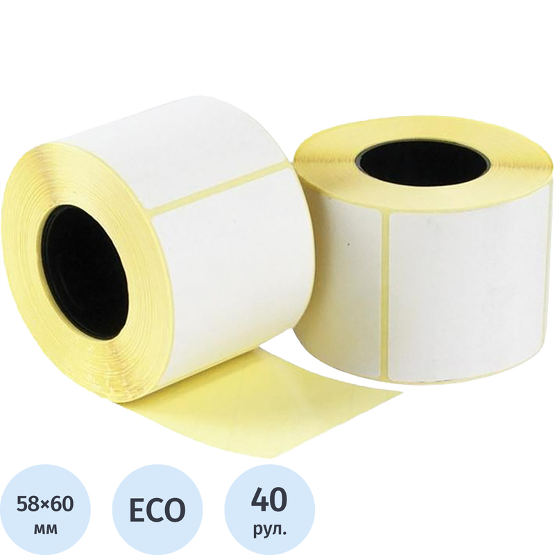 Термоэтикетки 58х60 мм ЭКО (диаметр втулки 40 мм, 40 рулонов по 450 этикеток)