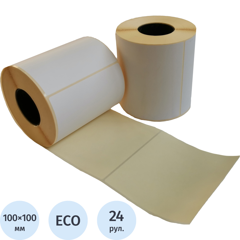 Термоэтикетки 100x100 мм ЭКО (диаметр втулки 40 мм, 24 рулона по 500 этикеток)