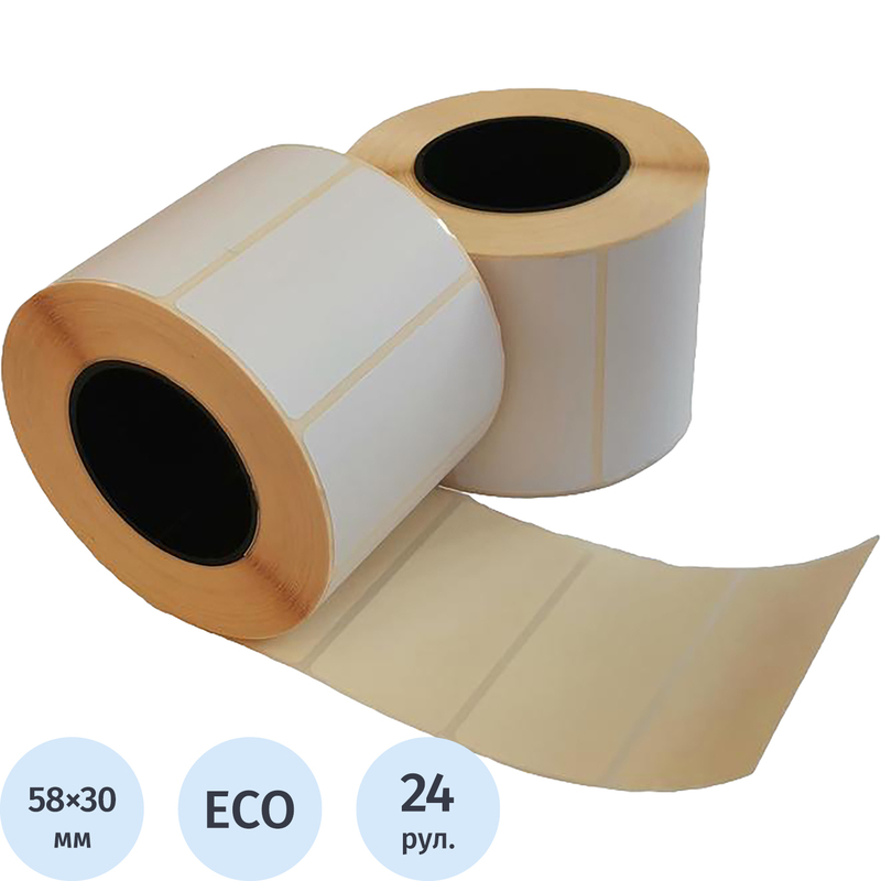 Термоэтикетки 58х30 мм ЭКО (диаметр втулки 40 мм, 24 рулона по 900 этикеток)