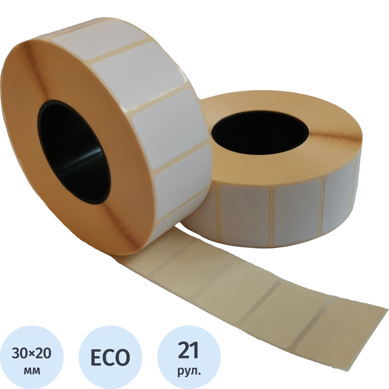 Термоэтикетки 30х20 мм ЭКО (диаметр втулки 40 мм, 21 рулон по 2000 этикеток)