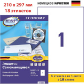 Универсальные самоклеящиеся этикетки Europe 100 производства Avery Zweckform изготовлены из бумаги белого цвета. Экономичная упаковка содержит 18 листов формата А4, на каждом листе — одна этикетка размером 210×297 мм. Отличаются хорошим соотношением стоимости и качества. Оптимальное решение для различных задач стандартной маркировки. Четкий отпечаток и надежная клейкость при всех типовых способах применения. Этикетки совместимы с лазерными и струйными принтерами и копирами. Гарантированное качество печати благодаря технологии QTC, исключающей загрязнение аппаратуры частицами клея. Возможность переклеивания отсутствует.