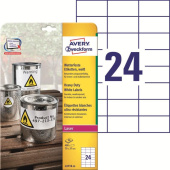 Торговая марка Avery Zweckform Цвет белый Страна происхождения Германия Схема вложения 30 уп. Форма прямоугольная Количество листов в упаковке, шт 20 Плотность г/кв.м 75 Количество этикеток на листе 24 шт. Размер этикетки 70x37 мм Возможность переклеивания Нет Возможность оставлять надписи Да Тип клея акриловый Для печати на копировальном аппарате , струйном принтере , цветном лазерном принтере , монохромном лазерном принтере Тип поверхности матовая Температурный диапазон применения от -20 до +80 град Шаблон для скачивания нет Тип этикеток всепогодные -