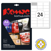 Торговая марка Комус Цвет белый Страна происхождения Россия Схема вложения 40 уп. Форма прямоугольная Количество листов в упаковке, шт 20 Плотность г/кв.м 75 Количество этикеток на листе 24 шт. Размер этикетки 63.5x33.9 мм Возможность переклеивания Нет Возможность оставлять надписи Нет Тип клея акриловый Для печати на копировальном аппарате , цветном лазерном принтере , монохромном лазерном принтере Тип поверхности матовая Температурный диапазон применения от -20 до +80 град Шаблон для скачивания да, в описании Тип этикеток всепогодные -