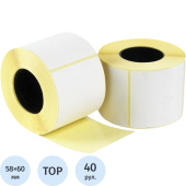 Самоклеящиеся термоэтикетки размером 58×60 мм без печати изготовлены из высококачественного материала 'ТермоТОП'. Рулон с втулкой диаметром 40 мм содержит 450 плюс-минус 5 этикеток. Рулоны упакованы в удобные компактные гофрокороба по 48 штук. На нескольких этикетках в рулоне возможно наличие черных полос в связи со спецификой технологического процесса. Они компенсируются за счет увеличения намотки рулона. Термоэтикетки предназначены для печати на термопринтерах в режиме прямой термопечати (Direct Termal, печать с помощью термоголовки).