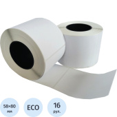 Термоэтикетки размером 58×80 мм без печати белого цвета изготовлены из материала Thermal ECO (ЭКО) ведущих производителей. Рулон с втулкой диаметром 40 мм содержит 350 плюс-минус 5 этикеток. Рулоны упакованы в компактные гофрокороба по 16 штук для удобства транспортировки. Самоклеящиеся полуглянцевые термоэтикетки применяются для нанесения веса, штрихкодов, цен и другой информации, маркировки товаров недлительного хранения. Потенциальные потребители — супермаркеты, производство, центры техобслуживания кассовых аппаратов, снабжающие компании, компании по поставке упаковочных материалов, предприятия, занимающиеся фасовкой продукции и т. д. Термоэтикетки предназначены для печати на термопринтерах в режиме прямой термопечати (Direct Termal, печать с помощью термоголовки).