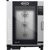 Пароконвектомат Unox XEBC-10EU-E1RM-MP. Пароконвектомат с универсальными направляющими Unox XEBC-10EU-E1RM-MP — это умный аппарат, в котором можно выпекать как свежие, так и замороженные хлебобулочные изделия, печь хлеб, изготавливать кондитерские изделия, а также тушить, жарить, коптить, разогревать, готовить на пару и по технологии су-вид. Автоматические циклы приготовления помогут получить идеальный результат. Подходит для работы как с гастроемкостями GN1/1 (530×325 мм), так и с противнями 600×400 мм. Пароконвектомат с универсальными направляющими XEBC-10EU-E1RM-MP разработан для замены модели XEVC-1011-E1RM. Ручные режимы: — Изменение параметров температуры в диапазоне 30—260°C. — Комбинированный режим 35 — 260°C с технологией Steam.Maxi от 30 до 90%. — Комбинированный режим 48 — 260°C с технологией Steam.Max; от 10 до 20%. — Режим с пароувлажнением 48 — 130°C с технологией Steam.Maxi 100%. — Режим приготовления с сухим воздухом, принудительный отвод влаги от 30°C с технологией Dry.Maxi™ от 10 до 100%. — Применение одноточечного термощупа и технологии Delta-T. Программирование: — Технология Mind.Maps: нарисуйте на панели управления многоэтапный процесс приготовления одним движением. — Встроенная память на 384 пользовательских программы с возможностью задать имя и фотографию. Технологии Unox: — Climalux;: автоматическое управление уровнем влажности. — Dry.Maxi;: принудительное удаление влаги из камеры печи. Программируется пользователем. Приготовление с удалением влаги в температурном диапазоне 30 — 260°C. — Air.Maxi: распределение воздуха внутри камеры печи. Вентиляторы с возможностью реверсивного вращения. 8 скоростей вращения вентиляторов, программируемые. — Steam.Maxi: обеспечение оптимального уровня влажности в камере печи. Получение пара в температурном диапазоне 35 — 260°C. Комбинация влажного и сухого воздуха в температурном диапазоне 35 — 260°C. — Rotor.Klean;: автоматическая мойка. 4 автоматических цикла мойки. Встроенный контейнер для моющего средства. Data driven cooking: — DDC.Ai: применяйте искусственный интеллект для получения персональных рецептов и советов в зависимости от фактических потребностей. — DDC.App: контролируйте вашу печь в режиме онлайн со смартфона. — DDC.Unox.com: создавайте и загружайте рецепты прямо в вашу печь с компьютера. Protek.Safe: максимальная теплоизоляция и безопасность — Автоматическая остановка вентиляторов при открытии двери для снижения потери тепла. — Дверца с двойным остеклением. Вспомогательные функции: — Температура предразогрева до 260°C всего за 6.5 минут. — Визуализация времени выпекания (когда не используется термощуп). — Режим теплового шкафа «Hold». — Режим непрерывного функционирования «INF». — Визуализация заданного и реального значения времени, температуры щупа, температуры внутри камеры, влажности и скорости вращения вентилятора. — Единицы измерения температуры: °C или °F. Технические особенности: — Запатентованная дверца с самосмазывающимися петлями из высокопрочного пластика фиксируется в положениях 60° — 120° — 180°. — Камера печи изготавливается из нержавеющей стали AISI 304 с закруглёнными углами для упрощения мойки. — Встроенная в дверь LED-подсветка камеры. — 9.5″ сенсорная панель управления с защитой от пара. — Замок двери изготовлен из высокопрочного углеродного волокна. — Вместительный лоток для сбора конденсата, образующегося на двери, имеет постоянный отвод воды, даже когда дверца откр