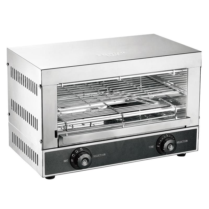 Тостер оснащен механической панелью управления: таймером на 15 минут и переключателем, регулирующим работу нагревательных элементов (верхний/нижний/верхний нижний). Тостер горизонтальный, 1 решетка 352×224 мм, нагревательные элементы — кварцевые трубки, таймер, 1,7 кВт, 220ВПуско-наладочные работы данного оборудования должны проводиться специализированной сервисной организацией. Более подробно с процессом ввода оборудования в эксплуатацию и условиями гарантийного обслуживания можно ознакомиться в руководстве/паспорте к товару.