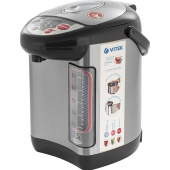 Торговая марка Vitek Цвет черный/серебристый Страна происхождения Китай Мощность 750 Вт Материал корпуса металл Схема вложения 6 шт. Размер, мм 210x380x320 Вес, кг 2.1 Гарантийный срок 12 мес Объем, л 3.3 Дисплей Нет С терморегулятором Да Индикация уровня воды Да Автоотключение при закипании Да Тип нагревательного элемента закрытая спираль Длина шнура 1.45 метр Звуковой сигнал при закипании Нет Подсветка Да Съемная крышка Нет Количество режимов нагрева воды 4 шт. Функция повторного кипячения Да Панель управления механическая Световой индикатор работы Да -