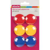 Магнитный держатель для досок Attache предназначен для фиксирования информации на металлических поверхностях магнитно-маркерных досок, флипчартов или витрин. Диаметр 40 мм. В упаковке поставляется 6 магнитных держателей.