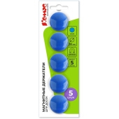 Магнитный держатель для досок предназначен для фиксирования информации на металлических поверхностях магнитно—маркерных досок, флипчартов или витрин. Корпус диаметром 30 мм изготовлен из пластика синего цвета. Магнитный держатель одновременно удерживает до 6 листов стандартной плотности. В упаковке поставляется 5 держателей магнитных. Диаметр магнита — 19.9 мм.