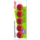 Магнитный держатель для досок предназначен для фиксирования информации на металлических поверхностях магнитно-маркерных досок, флипчартов или витрин. Корпус диаметром 30 мм изготовлен из пластика красного цвета. Держатель магнитный одновременно удерживает до 6 листов стандартной плотности. В упаковке поставляется 5 магнитных держателей.