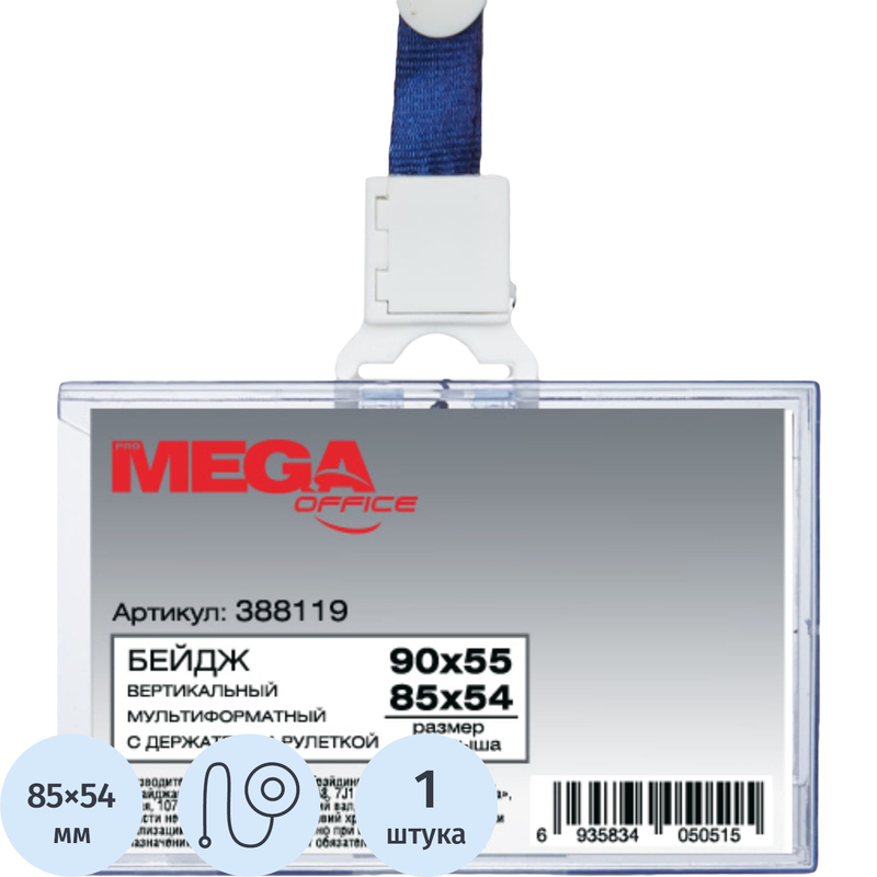 Бейдж Promega office горизонтальный 105х74 мм с держателем-рулеткой и синей тесьмой (размер вкладыша: 105x74)