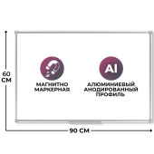 Доска магнитно—маркерная ультратонкая Attache Economy Ultra, 60×90 см. Настенная односекционная белая, без линовки. В основании доски прочный гофролист из картона толщиной 4,2 мм. Толщина металла 0,3 мм. Размер рабочей поверхности: 57×87 см. Лаковое покрытие. Алюминиевая рама шириной (глубиной) 6 мм с прочными пластиковыми уголками. Магнитно—маркерная доска используется во время презентаций или для отображения материала, который нужно наглядно представить. Металлическая белая глянцевая поверхность позволяет крепить на доску важную информацию с помощью магнитов, использовать бумагу для заметок с клейким краем (стикеры) или писать специальными whiteboard маркерами сухого стирания, которые легко удаляются. Таким образом, на доске удобно размещать информацию, которая часто меняется. Эти доски используются для комфортной работы с информацией в организациях, учебных заведениях и домашних офисах. При удалении записей применяются только специальные