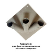 Стальной кронштейн предназначен для крепления на стенах зданий. Подходят флагштоки и древко диаметром 25 мм. Одновременно можно вставлять 3 древка. Материал — сталь с антикоррозийным покрытием. Вес кронштейна около 2.5 кг. Размеры: 200×200×100 мм.