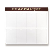 Информационный настенный стенд Attache «Информация» предназначен для размещения материалов на восьми листах формата А4 в вертикальном положении. Изготовлен из пластика белого цвета толщиной 6 мм. Карманы выполнены из прозрачного пластика. «Шапка» сделана из акрила темно-вишневого цвета, буквы — золотистые зеркальные. Стенд укомплектован необходимым крепежом.