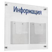 Информационный настенный стенд с объемными карманами предназначен для размещения материалов формата А4, а также брошюры формата А4 в вертикальном положении. Изготовлен из акрила прозрачного цвета, толщиной 5 мм, 2 объемных кармана — литьевой полистирол. Оформление надписи из объемного акрила толщиной 3 мм. Установка стенда осуществляется на дистанционных держателях, благодаря чему между стеной и стендом появляется расстояние в 15–20 мм. Так достигается красивый визуальный эффект. Благодаря своим прекрасным эстетическим качествам, держатели отлично смотрятся на стене, а простая конструкция позволяет быстро монтировать их. Функционал и эстетичный вид данного изделия позволяют разместить его в любом интерьере, будь то магазин, офис, выставка, медицинское учереждения, салон красоты, торговый центр, школа, институт