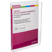 Торговая марка Attache Цвет прозрачный Страна происхождения Россия Материал акрил Формат А3 Схема вложения 6 шт. Единица продажи штука Размер, мм 400x303x32 Количество штук в упаковке 6 Количество отделений 1 Тип крепления шурупы Вид изделия карман Расположение вертикальное Вес без упаковки 550 г Тип отделения объемное -