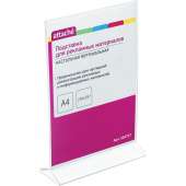 Торговая марка Attache Цвет прозрачный Страна происхождения Россия Материал акрил Формат А4 Назначение для рекламных материалов Единица продажи штука Размер, мм 297x210x75 Количество штук в упаковке 1 Количество отделений 1 Двухсторонняя Да Вид изделия подставка Расположение вертикальное Установка настольная -