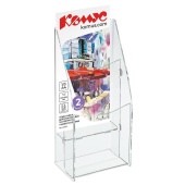 Вертикальная односторонняя подставка. Предназначена для размещения бумажнопечатной продукции формата 1/3 А4. Может использоваться как настольный вариант, так и подвесной, имеет отверстия для подвеса. Изготовлена из прозрачного акрила. В одной упаковке товара содержится 1 изделие. Поставляется в защитной пленке. Размер поля: 210×105 мм. Размеры (ВxШxГ): 250×110×75 мм.