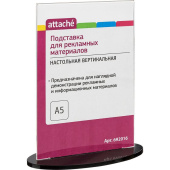 Вертикальная двухсторонняя настольная подставка под информацию Attache. Формат А5. Имеет полукруглое основание из черного акрила. Поставляется в защитной пленке. Размер (ВхШхГ): 150×210×70 мм.