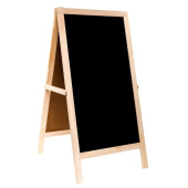 Двусторонний магнитно-маркерный/меловой штендер — стритлайн. Две рабочие поверхности — белая (магнитно-маркерная) и черная (меловая). Материал: дерево. Размеры: 570×1180×50 мм. Размер каждой рабочей поверхности 465×875 мм. Предназначен для нанесения информации мягким мелом на одной стороне (меловой) и маркером для белых досок на другой (магнитно-маркерной). Белая поверхность мольберта также позволяет размещать информацию с помощью магнитов. Складная рама позволяет удобно хранить штендер.
