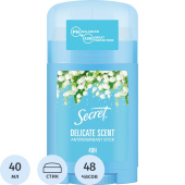 Дезодорант-антиперспирант женский Secret Delicate Scent 40 мл стик Твёрдый антиперспирант Secret мгновенно высыхает и не оставляет следов, помогая избавиться от неприятного запаха и пота на 48 часов. Сохраняйте непревзойдённую свежесть в течение всего дня с насыщенным и расслабляющим ароматом Деликат твёрдого дезодоранта-антиперспиранта. Продукт сбалансирован по PH и не оставляет следов. Забудьте о белых пятнах на одежде с невидимым, мгновенно высыхающим твёрдым дезодорантом. Неприятный запах и пот никак не сочетаются с его технологией защиты от неприятного запаха и пота на 48 часов. Наслаждайтесь сухостью, отсутствием неприятного запаха и непревзойдённой свежестью с невидимым твёрдым дезодорантом-антиперспирантом Secret. Состав: dimethicone, aluminum zirconium trichlorohydrex gly, stearyl alcohol, paraffinum liquidum, c12-15 alkyl benzoate, hydrogenated castor oil, talc, petrolatum, aqua, glycine, peg-8 distearate, ppg-14 butyl ether, parfum, cyclodextrin, behenyl alcohol, hexyl cinnamal, hydroxycitronellal, citronellol, linalool, arachidyl alcohol, geraniol, benzyl benzoate, bht.