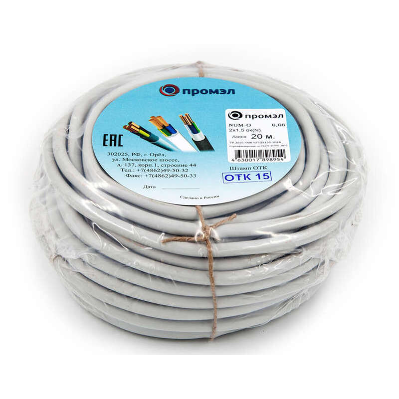 Кабель NUM-O 2x1.5 (20 метров) бухта белый ПромЭл 13321300 ГОСТ
