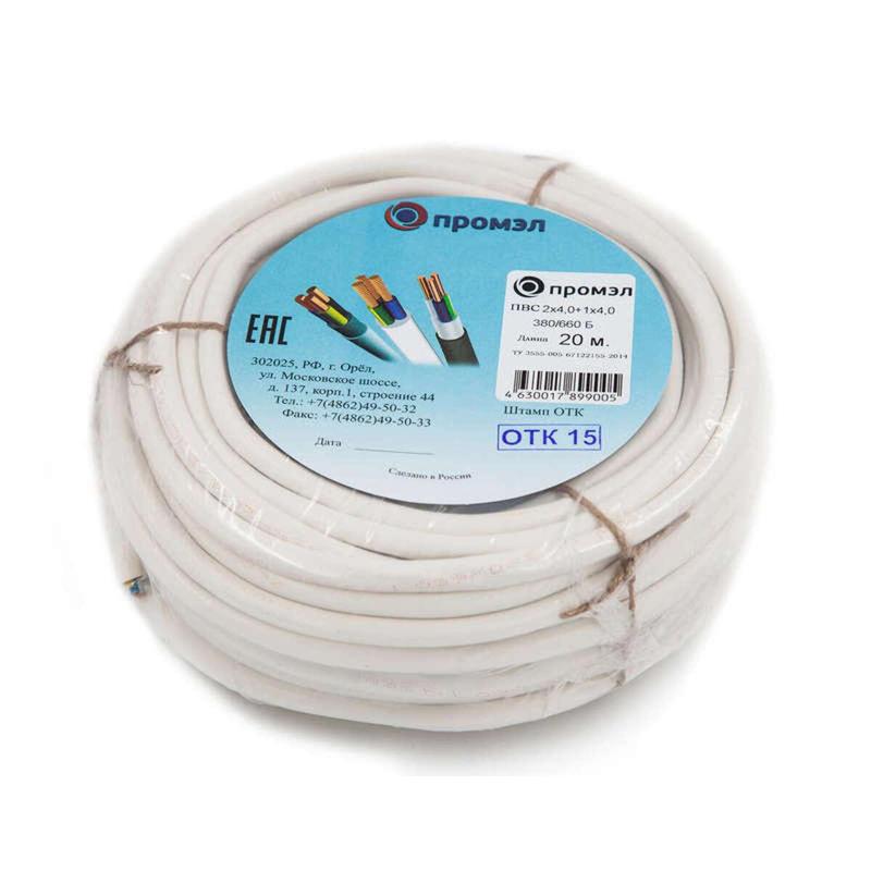 Провод ПВС 3x4.0 (20 метров) бухта белый ПромЭл 13321700 ГОСТ
