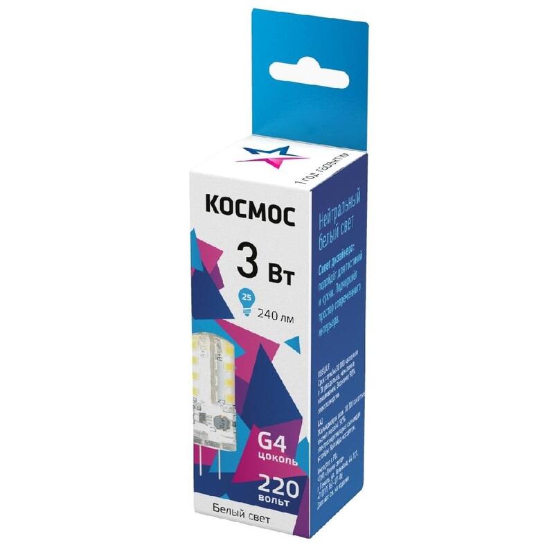 Лампа светодиодная Космос капсула 3Вт G4 4500K 240Лм 220В (100 штук в упаковке, LED3wJCG4220v45_100)