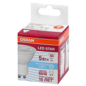 Низковольтная светодиодная рефлекторная лампа Osram, излучает естественный белый свет, со штырьковым цоколем типа Retrofit GU10, мощность 5 Вт. Компактные размеры, небольшой вес.