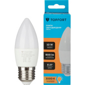 Светодиодная лампа Topfort (матовая) формы свеча, с цоколем Е27, мощность 10В. Является аналогом лампы накаливания в 75 Ватт. Матированное покрытие колбы позволяет рассеивать свет максимально приятно для восприятия глазом человека.