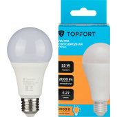 Светодиодная лампа Topfort (матовая) формы груша, с цоколем Е27, мощность 25В. Является аналогом лампы накаливания в 150 Ватт. Матированное покрытие колбы позволяет рассеивать свет максимально приятно для восприятия глазом человека.