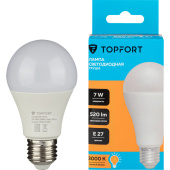 Светодиодная лампа Topfort (матовая) формы груша, с цоколем Е27, мощность 7В. Является аналогом лампы накаливания в 60 Ватт. Матированное покрытие колбы позволяет рассеивать свет максимально приятно для восприятия глазом человека.