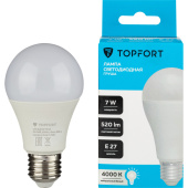 Светодиодная лампа Topfort (матовая) формы груша, с цоколем Е27, мощность 7В. Является аналогом лампы накаливания в 60 Ватт. Матированное покрытие колбы позволяет рассеивать свет максимально приятно для восприятия глазом человека.