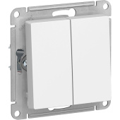 Двухклавишная конструкция позволяет управлять двумя источниками света из одной точки, обеспечивая комфорт и удобство в эксплуатации. Механизм крепления оснащен усиленными прямыми монтажными лапками, что гарантирует надежную фиксацию устройства в монтажной коробке и облегчает установку.