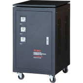 Стабилизатор напряжения Ресанта АСН-45000 / 3-ЭМ электромеханического типа предназначен для выравнивания входного напряжения и защиты приборов от перепадов напряжения с суммарной мощностью до 45 кВт. Работает с напряжением 380В с точностью до +/-2%. Устройство оснащено фильтрами сетевых помех, предотвращающими искажение частотной синусоиды, микропроцессорным управлением и стрелочной индикацией, отображающей параметры напряжения. Превышение пределов поддерживаемого входного напряжения автоматически отключает подачу питания. Прочный корпус защищает внутренние узлы аппарата от повреждений. Прибор может обеспечивать стабильным питанием частные дома, производственные и офисные здания. Данный стабилизатор обеспечивает самую точную регулировку напряжения (погрешность до 2%) за счет считывания напряжения с каждого витка катушки. Номинальная мощность при входящем напряжении 190В составляет 45000Вт. Количество фаз = 3.