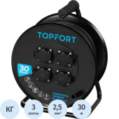 Удлинитель на катушке TOPFORT КГтп-ХЛ 3×2.5 кв.мм 30 м 16, А с заземлением 4 розетки ( TEH303-195 ) Удлинитель на металлический катушке TOPFORT — удобное и практичное решение для комфортного использования электроприборов на расстоянии от стационарной розетки: газонокосилки, электрические пилы, триммеры, электродрели и т. д. Крепкий стальной корпус устойчив к ударам, влаге и перепадам температур. Легко разматывается на нужную длину и так же просто сматывается обратно, избегая запутывания проводов. Основные преимущества: — Высокая степень пылевлагозащиты IP44 по ГОСТ 14254; — Розеточные гнёзда со специальными крышками; — Прорезиненная ручка, обеспечивающая надёжную изоляцию и комфортное использование; — Прочная литая вилка; — Специальная рукоятка на корпусе для быстрого сматывания; — Морозостойкий кабель КГтп-ХЛ не дубеет при температуре до -40 °С; — Цельная рама из стальной трубы с замкнутым профилем. Характеристики изделия: — Максимальная мощность: 4000 Вт; — Максимальный ток: 16, А; — Длина провода: 30 м; — Температурный диапазон эксплуатации: от -40 до +50 градусов Цельсия; — Вес: 6,3 кг. Внешний вид и/или характеристики товара могут быть изменены производителем в соответствии с производственным процессом.