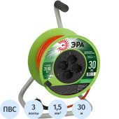 Удлинитель на катушке силовой Эра ПВС 3×1.5 кв.мм 30 м 16 А с заземлением 4 розетки (Б0056102) Мощность 16А/3500Вт. Используется для работы на строительных площадках или дачных участках. Удобен при работе с приборами, находящимися удалённо от стационарной розетки. Например, газонокосилки, электрические, пилы, триммеры или электродрели. Провод в удлинителях Эра сделан из 100% меди, что делает его абсолютно пожаробезопасным. Рама удлинителя сделана из высокопрочной стали, а пластиковой корпус выполнен с применением негорючих добавок. Внешний вид и/или характеристики товара могут быть изменены производителем в соответствии с производственным процессом.
