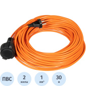Удлинитель-шнур TOPFORT ПВС 2×1 кв.мм 30 м 10 А без заземления 1 розетка (TEH303-191) Силовой удлинитель TOPFORT простой и удобный вариант для подключения электроприбора к сети. Позволяет использовать электроинструменты, садовую и прочую технику с коротким питающим шнуром на удалённом расстоянии от стационарной электросети. В комплект входит стяжка, при помощи которой удобно хранить и транспортировать удлинитель. Преимущества изделия: — Высокая степень пылевлагозащиты IP44 по ГОСТ 14254; — Кабель ПВС с надёжной изоляцией; — Розеточные гнёзда со специальной крышкой; — Удобно хранить и транспортировать, благодаря компактным размерам. Характеристики изделия: — Максимальная мощность 2200 Вт — Максимальный ток 10А — Длина провода 30 м — Температурный диапазон эксплуатации: от −5 до +40 градусов — Вес: 2,4 кг Внешний вид и/или характеристики товара могут быть изменены производителем в соответствии с производственным процессом.