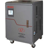 Стабилизатор напряжения Ресанта АСН 20000/1-Ц используется для выравнивания входного напряжения и защиты приборов от высоких скачков напряжения с суммарной мощностью до 20 кВт. В конструкции предусмотрен фильтр входных и выходных частотных помех и аварийное отключение нагрузки — это обеспечивает защиту подключенных приборов. Стабилизатор оснащен дисплеем, на котором отображаются основные рабочие параметры. В нижней части корпуса установлены колеса для удобной транспортировки устройства.