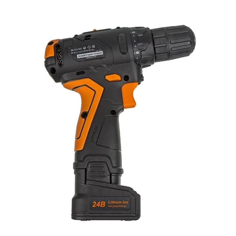 Дрель-шуруповерт безударная аккумуляторная Вихрь ДА-24Л-2К/Б 24 В Li-ion 2 АКБ 2 Ач+ЗУ (72/14/24)