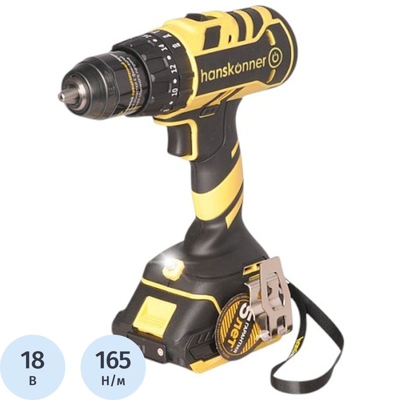 Дрель-шуруповёрт ударная аккумуляторная Hanskonner 2 АКБ х Li-ion (18 В, 2 Ач)+ЗУ в кейсе (HCD1865I)