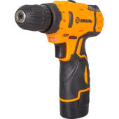 Модель оснащена щеточным мотором, который приводится в движение за счет литий-ионного аккумулятора после разблокировки и нажатия клавиши пуска. Устройство может работать на 2 скоростях, что позволяет легко справляться со сверлением отверстий в дереве, металле и пластике, закручиванием крепежных элементов. Наличие реверсного движения облегчает процесс выкручивания винтов и шурупов, выемки сверла в случае застревания. Биту можно быстро заменить другой благодаря быстрозажимной конструкции патрона. Дрель-шуруповерт поставляется в специальном кейсе. В комплект входит все необходимое для проведения различных действий: набор бит, шестигранников, шестигранных головок, рулетка, отвертки, молоток-гвоздодер, ножницы, строительный нож, плоскогубцы, метизы.