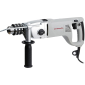 Профессиональная мощная сетевая двухскоростная ударная дрель с предохранительной муфтой применяется для бурения крупных отверстий в хрупких материалах — кирпич, плитка, керамика и для проведения общестроительных работ, например, в качестве миксера, или для сверления коронками. Оснащается дополнительная рукоятка с ограничителем глубины бурения.