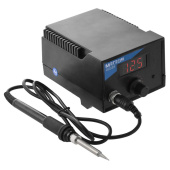 Мегеон 00335 — это удобный паяльник с ярким светодиодным дисплеем и аналоговым регулятором установки температуры. Немаловажным преимуществом при работе с паяльником является маленький вес, мягкий провод и компактные размеры блока управления. На рукоятке предусмотрена резиновая наклдака противоскольжения. Жало паяльника имеет распространенный типоразмер 900М-Т . Благодаря этому имеется большое количество сменных наконечников разной формы и размеров (в комплект не входят) для осуществления специфической пайки. В дополнение можно добавить еще одно преимущество и это автоматическое поддержание установленной температуры паяльника. Для исключения повреждения радиокомпонентов статическим электричеством станция имеет фунцию антистатической защиты. Прибор по достоинству оценят профессионалы и любители.